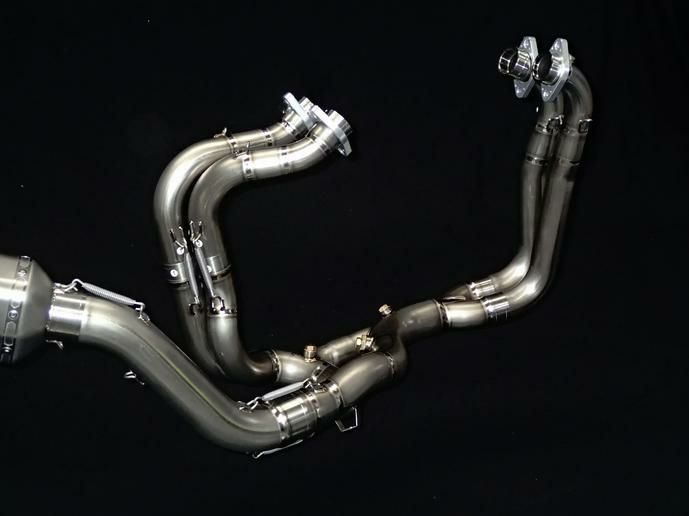 素材ヘッダー:Ti1チタン マフラー:Ti1チタン&カーボンファイバー製エンドキャップ チタンはステンレスと異なり軽量で、腐食、汚れの心配がなく、耐酸性、耐塩性にも優れています。 放熱性もスチールの2倍あるため、熱での悪影響がほとんどありません。