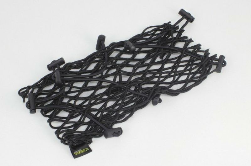 ツーリングネットにはゴムを3本備え、1本1本にストッパーを3個付ける事により、縛る機能とフックに引っ掛けやすくする機能を備えました。