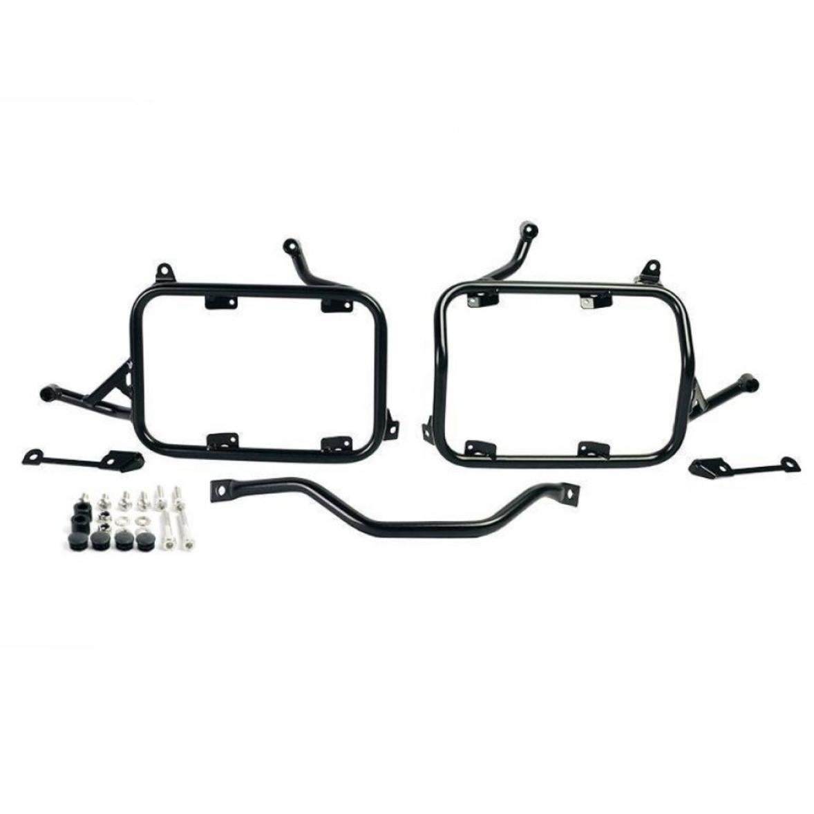 BMW R1300GS アルミナムブラックバックホルダーブラックレザーフロント&サドルバッグサポートフレーム右側キット ユニットガレージ