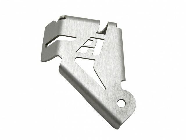 The R1300GS checks in at over 500 pounds without a rider - requiring every bit of braking power to stop in a hurry. Keep your rear brakes safe with a Rear Brake Reservoir Guard from AltRider. Constructed from lightweight aluminum the Rear Brake Reservoir Guard keeps errant rocks and debris from taking out your ability to stop. The deliberate design of the guard locks the cover in place preventing contamination of the delicate braking system. Available in anodized silver or black.