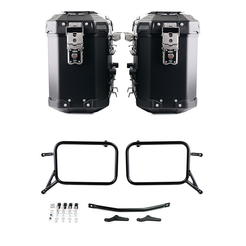 容量39Lのパニアケース左右分と、車種専用サブフレームを組み合わせたコンプリートキット。