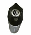 ステンレス製のサイレンサーボディにCNC加工で製造された5角形のブラックエンドキャップが採用されています。