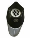 ステンレス製のサイレンサーボディにCNC加工で製造された5角形のブラックエンドキャップが採用されています。