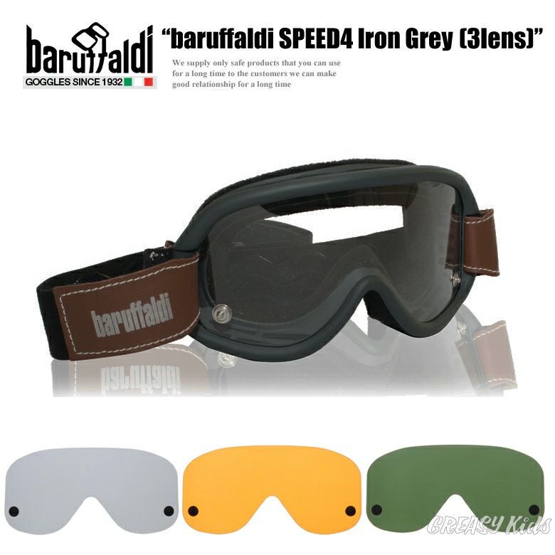 【商品説明】 最新素材を用いながらもハンドメイドを貫いている為、ディテールと高級感の両立を実現しています。 『SPEED4』は眼鏡使用可能で、ビンテージテイストのゴーグルです。 スナップボタンによる取り外し可能なカバーレンズが3枚付属します。 付属品:オリジナルソフトケース Made in Italy