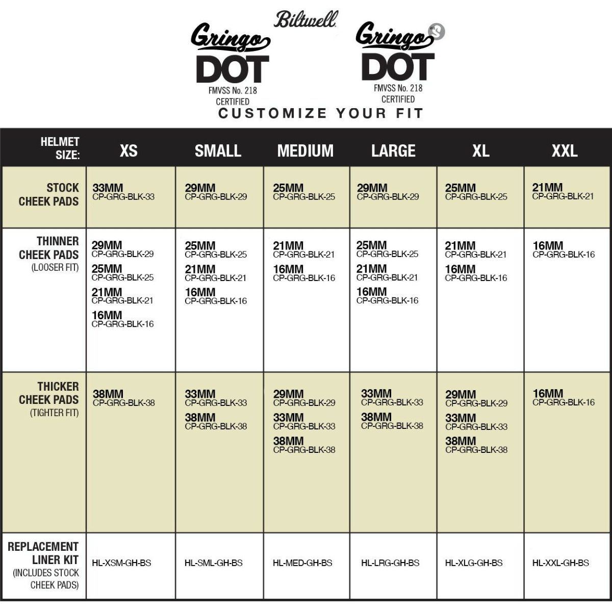 内装 ライナービルトウェル(Biltwell) グリンゴ(gringo-s) 内装 ライナー