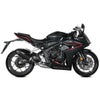 Mivv AK-1 フルエキゾーストは、イタリアの精密技術とMotoGPで培われたノウハウを融合したハイパフォーマンスマフラーです。 HONDA CB650R / CBR650R (2024-)専用に開発され、ブラックステンレス製ボディにカーボンキャップを採用。 耐久性と軽量化を両立し、純正比で約2.7kgの軽量化を実現します。 最高出力は+8.6HP、最大トルクは+6.6Nm向上し、スロットルレスポンスとエンジンサウンドが劇的に変化。 Mivv独自のAK-1ラインは、スポーティかつ洗練されたスタイリングと官能的なサウンドを両立し、ストリートとサーキットの両方で高次元の走行体験を提供します。 カーボンヒートシールド標準付属。 信頼のイタリア製エキゾーストシステムです。