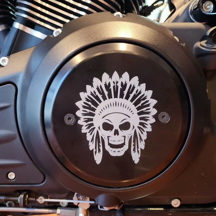 【商品説明】 インディアン用のダービーカバー。 インディアンファンのための、チーフスカルのダービーカバー。