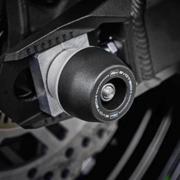 Evotech Performance製リアスピンドルボビンは、Kawasaki Z900/Z900RSのリアホイール左右を高品質素材で守るクラッシュプロテクションです。