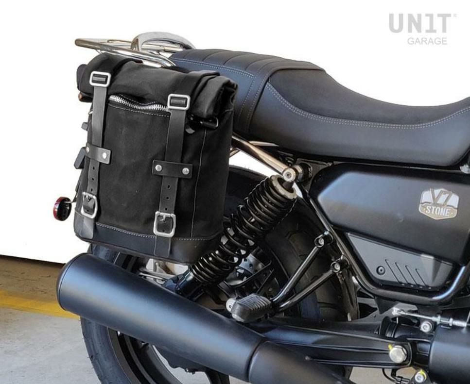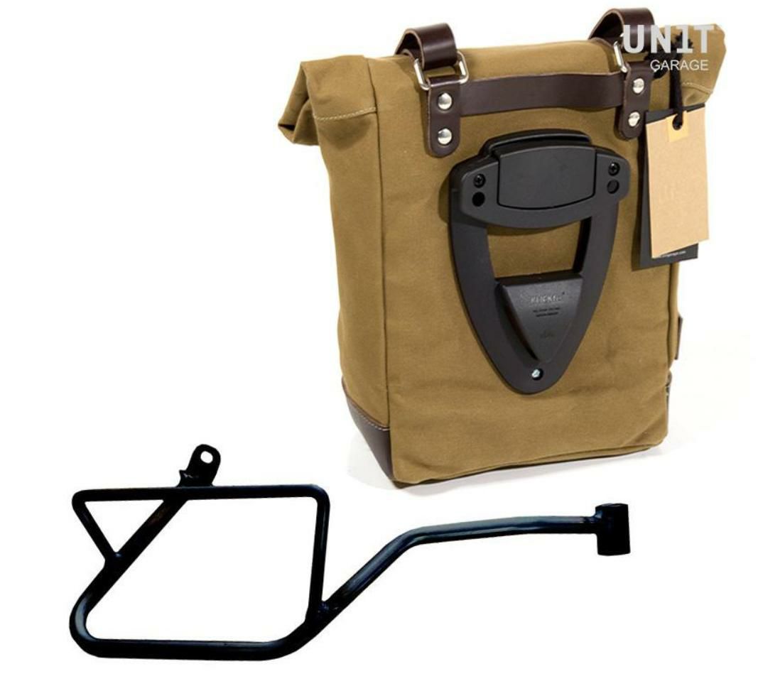 モトグッチV7 850 アルミブラックバック/ブラウンレザーフロント バッグホルダー&サポート 左側 ユニットガレージ