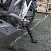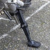 このサイドスタンドは、長さ調整が可能なだけではなく、土・砂利・泥地など不安定な場所で沈み込み防止、安定感アップのためにスタンドの設置面を広げてありますので、スタンドエンドを装着する必要がありません。