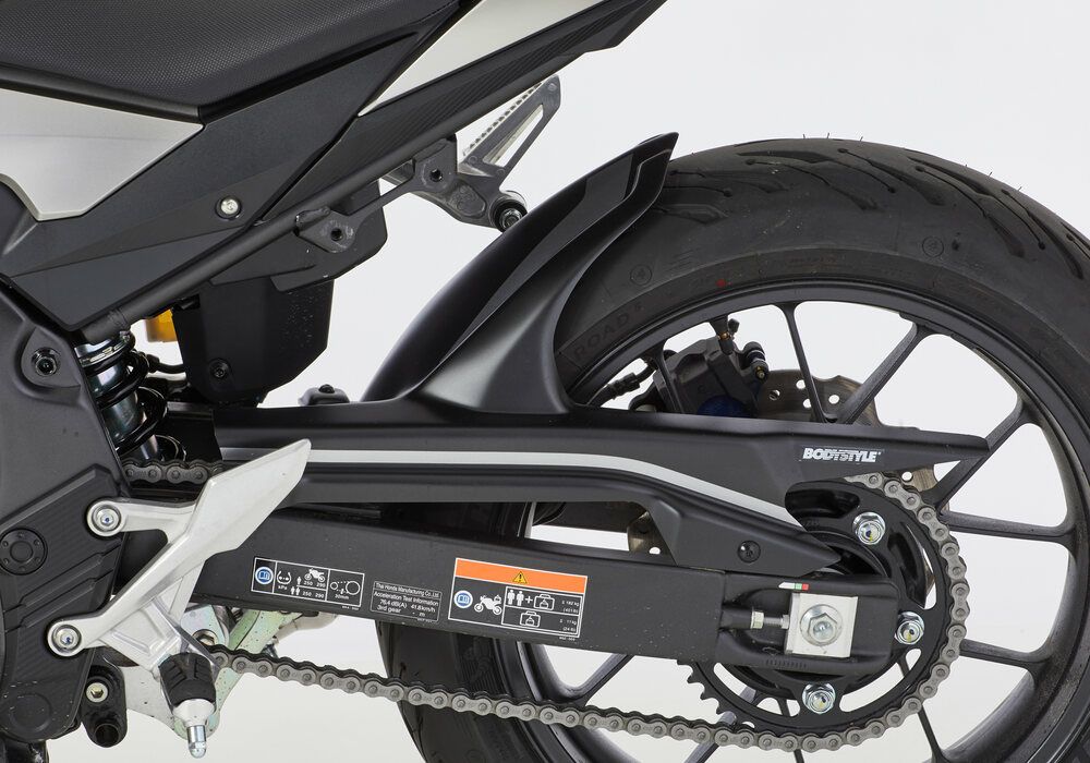 BODYSTYLE製SPORTSLINEリアフェンダー(純正色塗装)は、バイクのリアビューを精悍に引き締めつつ、泥はねや飛び石、雨水、路面の小さな障害物などからリア周辺をしっかり保護するHONDA CB500F (2019-2020) CB500X (2019-2021) CBR500R (2019-2021)専用の高品質カスタムパーツです。