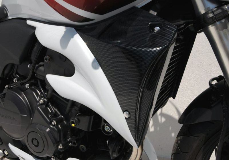 BODYSTYLE製SPORTSLINEラジエーターサイドカバー(未塗装)は、ラジエーター周辺を飛び石や汚れ、日常走行でのダメージから保護するHONDA CB600 Hornet (2007-2010)専用の高品質カスタムパーツです。