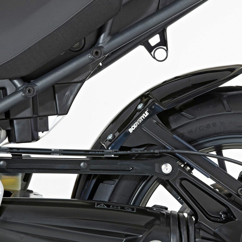 BODYSTYLE製SPORTSLINEリアフェンダー(ブラック塗装)は、バイクのリアビューを精悍に引き締めつつ、泥はねや飛び石、雨水、路面の小さな障害物などからリア周辺をしっかり保護するTRIUMPH Tiger 1200 Explorer専用の高品質カスタムパーツです。