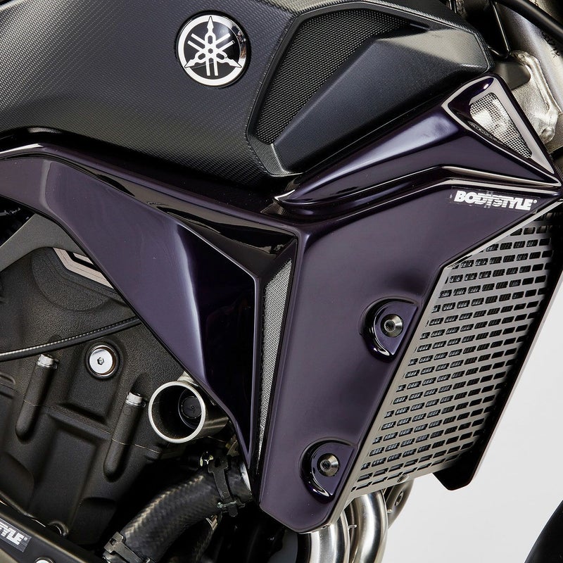 BODYSTYLE製SPORTSLINEラジエーターサイドカバー(純正色塗装)は、ラジエーター周辺をスタイリッシュに保護するYAMAHA MT-07 (2016-2017)専用の高品質カスタムパーツです。