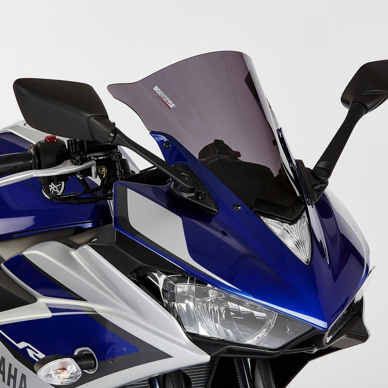 BODYSTYLE製レーシングスクリーン(ダークスモーク)は、愛車のフロントフェイスを精悍に引き締めつつ、走行中の風圧や空気の乱れからライダーを保護するYAMAHA YZF-R3 (2015-2018)専用の高品質カスタムパーツです。