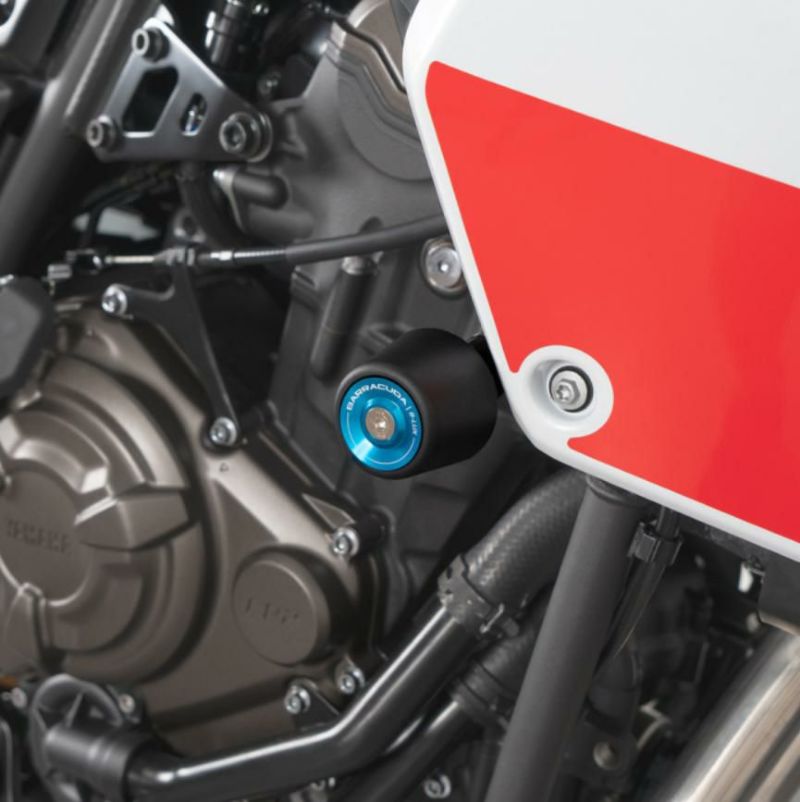 Barracuda(バラクーダ) クラッシュパッドキット ヤマハ テネレ700用 転倒時のダメージを最小限に抑えるために設計されたクラッシュパッドキットです。 イタリア発の人気ブランド Barracuda(バラクーダ) が手掛ける高品質プロテクションパーツで、スポーティーなデザインと機能性を両立しています。 このクラッシュパッドは、転倒やスリップ時にエンジンやフレームへ直接ダメージが及ぶのを軽減。 黒色PVC製のパッドが衝撃を吸収し、アルマイト処理されたアルミスペーサーと高強度ボルトでしっかり固定されます。 バイクの美しいラインを崩さないコンパクト設計で、ボルトオンで簡単に装着可能です。 さらに、好みに合わせて選べる別売りカラーカスタムインサート(品番:SEL-TA-INSERT)(シルバー・ブラック・ゴールド・レッド・ブルー)が用意されており、愛車の個性を際立たせることができます。 補修用パッド(品番:RIC-TAMP)(リペアパーツ)もラインナップされているため、長く安心して使用できます。 【特徴】 ●デザイン:コンパクトでスタイリッシュ、バイクの外観を損なわない設計 ●カスタム性:別売りカラーカスタムインサート(品番:SEL-TA-INSERT)でドレスアップ可能 ●メンテナンス性:補修用パッド(品番:RIC-TAMP)あり