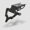バイクにネジ止めする上部と、ナンバープレートやウインカーを取り付ける回転部の2つのパーツで構成されています。