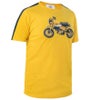 最高品質のコットン100%、4色のスクリーンプリントによるゴールデンイエローのTシャツ。