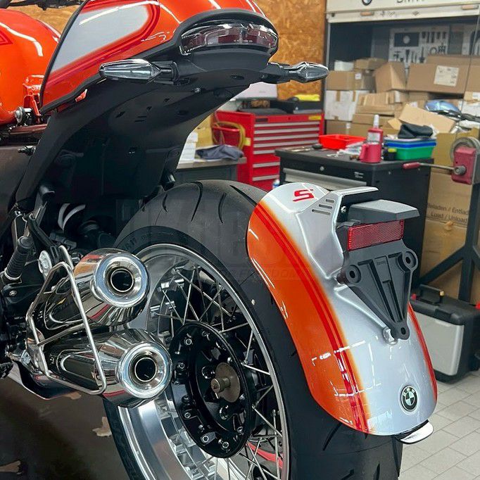 DKdesign(DKデザイン)が手掛けるBMW R12S専用のリアマッドガード兼ナンバープレートサポート。