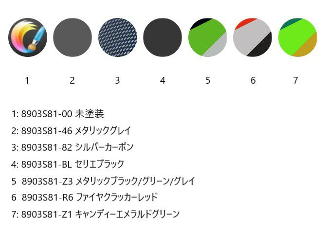 詳細を見る お気に入りに登録する 他の画像を見る カワサキ Z650RS (22-25) ビキニカウル アルマックス 商品番号 0903S81 0903S81-00 No Paint 0903S81-Z2 Gray/Black 2023/2024(metallic moondust gray [25X], ebony [H8]) 0903S81-46 anthracite Gray 2022(metallic moondust gray [25X]) 0903S81-k4 Gray mat carbon 2024(metallic matte carbon gray [51B]) 0903S81-82 Silver Carbon Look 2022/2025 0903S81-18 Glossy Black 2022, 2024/2025(ebony [H8]) 0903S81-67 Black metallic Glitter Gray 2022/2023(metallic spark black [660/15Z]) 0903S81-BL Satin Black (Black series Line) 2022/2025 0903S81-T9 Black/Silver/orange 2025(ebony [H8], Gold , Silver [argent]) 0903S81-GH Gray/Gray mat 2024(metallic phantom silver [GU], metallic matte carbon gray [51B]) 0903S81-N2 Glossy Black /Gray Mat 2024(ebony [H8], metallic matte carbon gray [51B]) 0903S81-KB Black/Gray/Rouge 2023(metallic spark black [660/15Z], Gray, rouge metal) 0903S81-N4 Black/Yellow 2025(ebony [H8], Jaune) 0903S81-10 Black/Green 2025(ebony [H8], candy lime green [35P]) 0903S81-Z3 Black/Green/Gray 2022(metallic spark black [660/15Z ], Green, Gray) 0903S81-19 Red 50th 2022(Incandescent fireball) 0903S81-Z1 Green/Light green/or 2022/2023(Candy Emerald Green [GN1]) 販売価格 ¥ 50,400 税込 SALE価格 ¥ 50,400 税込 KAWASAKI Z650RS (22-25) 各カラーお選び頂けます! 5~10週