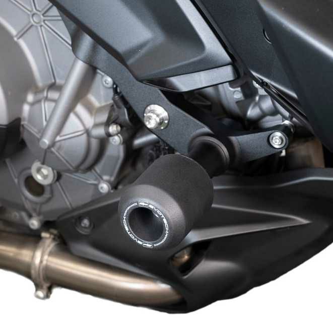転倒や接触時の最初の入力を受け止めやすい60mmサイズの強化ナイロンポリマーボビンを組み合わせ、フェアリングやライダーの脚まわりに干渉しにくい位置関係を狙って設計がされています。