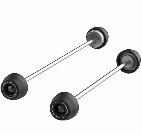 Ducatiの最新V4系モデルに向けて、前後アクスル(スピンドル)周りの保護をまとめて追加できるEvotech Performance製スピンドルボビンキットです。