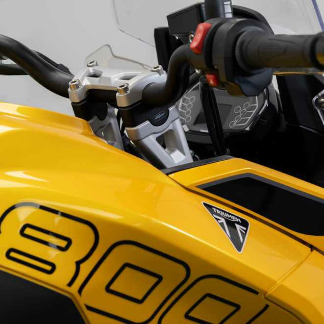 Evotech Performance「ハンドルバーライザー」は、TRIUMPH Tiger Sport 800(2025年以降)専用に設計された25mmアップのボルトオンキットです。