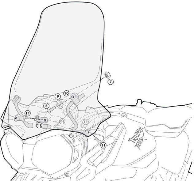 タイガー800/800XC/800XR 11-17 ウインドスクリーン 53x46.5 クリア GIVI