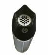 ステンレス製のサイレンサーボディにCNC加工で製造された5角形のブラックエンドキャップが採用されています。