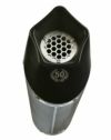 ステンレス製のサイレンサーボディにCNC加工で製造された5角形のブラックエンドキャップが採用されています。