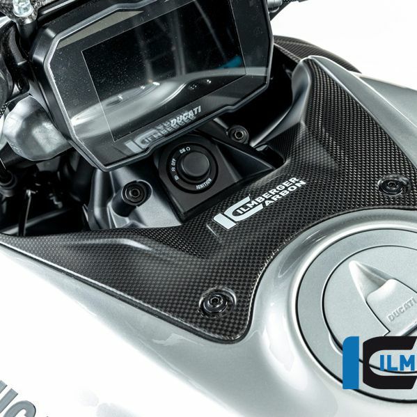 Ducati Diavel V4向けに設計された、イルムバーガー製のマットカーボン製タンクカバーです。