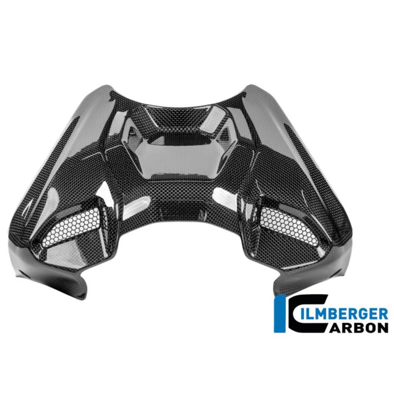 ストリートファイターV4 25年以降モデル用のアッパーカーボンタンクカバーです。 エレガントな外観を与えるだけでなく、最小限の重量で極めて高い強度を誇ります。