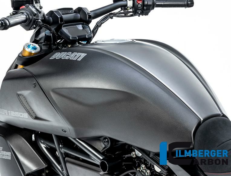 ドゥカティのディアベル1260用 マットカーボン フューエルタンク カバーです。【左側】