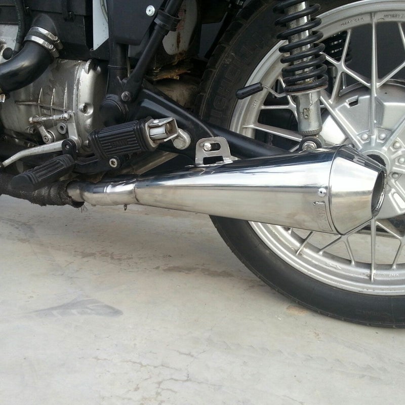 イタリアのマフラーメーカー、MASS Exhaust(マス エキゾースト)のR80/R100用ステンレス 2in1集合マフラーです。
