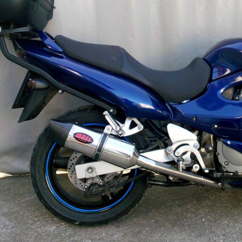 GSX750F 99-06 オーバルステンレス スリップオンマフラー カーボンチップ MASS Exhaust