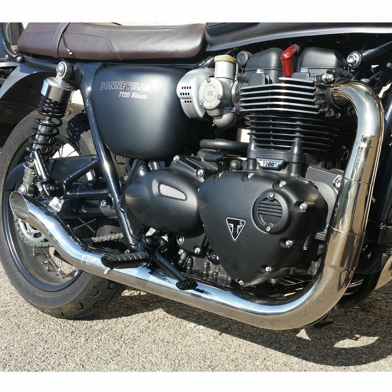イタリアのマフラーメーカー、MASS Exhaust(マス エキゾースト)のボンネビルT100/T120用ステンレス 2in2フルエキゾーストマフラーです。