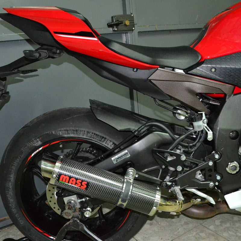 イタリアのマフラーメーカー、MASS Exhaust(マス エキゾースト)のYZF-R1/R1M用カーボンマフラー+ステンレス触媒デリートパイプのセミコンプリートキットです。