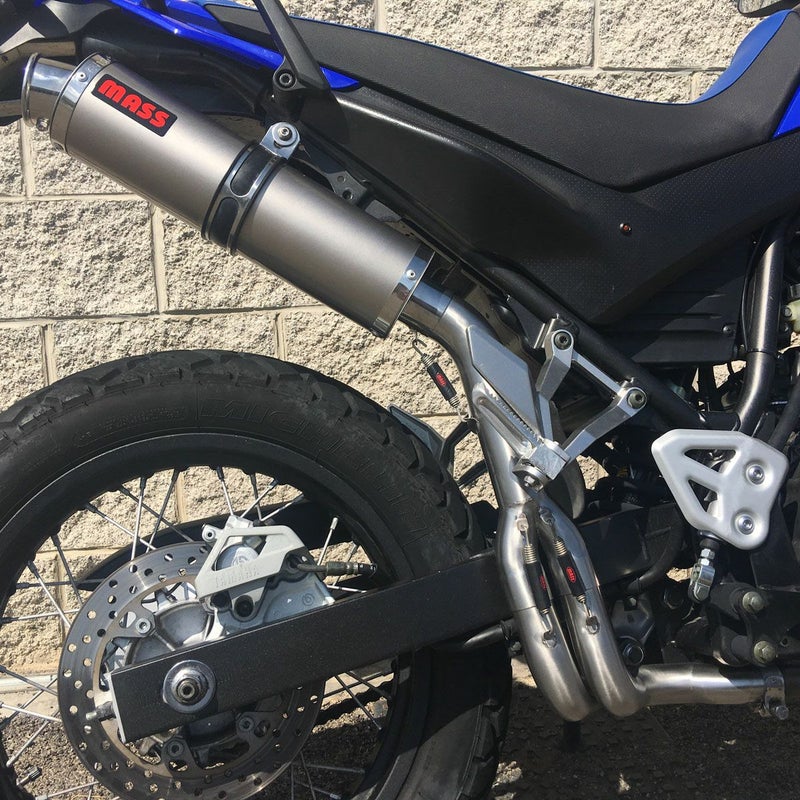 イタリアのマフラーメーカー、MASS Exhaust(マス エキゾースト)のXT660R用 2in1 セミコンプリートマフラーです。