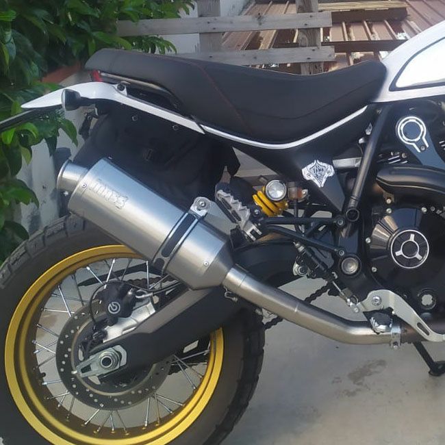 イタリアのマフラーメーカー、MASS Exhaust(マス エキゾースト)のドゥカティ スクランブラーデザートスレッド用ステンレス スリップオンマフラーです。