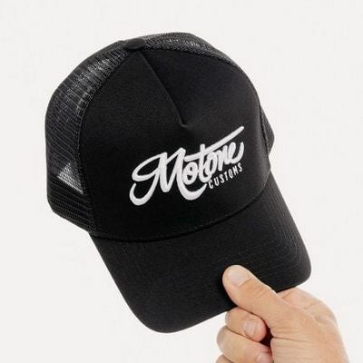Motoneの「OG トラッカーキャップ Curved Peak ブラックコットン/ホワイトロゴ」は、クラシックな5パネル構造と曲がったツバ(Curved Peak)を備えた、Motoneらしいシンプルで洗練されたトラッカーキャップです。