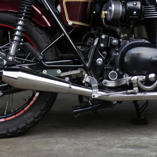 手曲げエキゾーストパイプは、戦前の英国モーターサイクル同様の柔らかな曲線美を描きます。