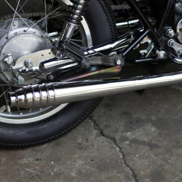キャブレター車のSR400/500にボルトオン装着できるスリップオンマフラー69メガホン ダウンタイプです。