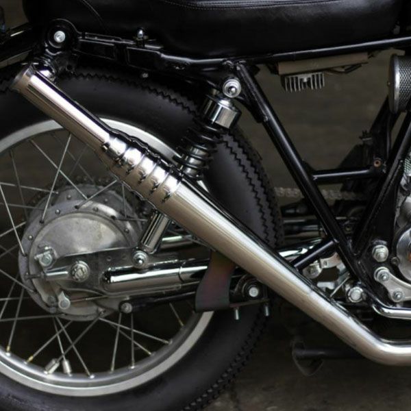 キャブレター車のSR400/500にボルトオン装着できるスリップオンマフラー69トランペット アップタイプです。