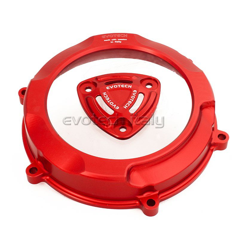 イタリアのパフォーマンスパーツメーカーEVOTECH(エボテック)製スケルトンクラッチカバーとプレッシャープレートのセット商品 プレッシャープレートおよびカバー本体は、CNCアルミ削り出しで、アルマイト処理をおこなっております。 カバーの透明窓は耐衝撃、耐熱性のあるポリカーボネート製で、エンジン熱に十分対応しております。