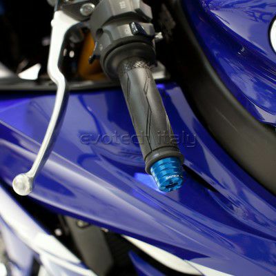 カウンターバランス適正化と転倒時にハンドル周りのダメージを抑えるハンドルバーエンドです。 航空機グレードのアルミニウムをCNC削り出し、発色豊かなアルマイト加工が施されています。