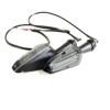マットブラックのアルミニウム製ボディにM10ネジ付きステムが取り付けられており、クリアなスモークガラスとアンバーの光により高い視認性を実現します。
