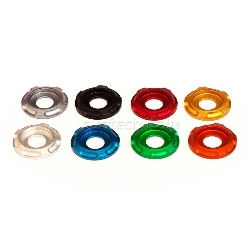 スペシャルなワッシャーはアルミ製で、鮮やかな色にアルマイト処理されています。
