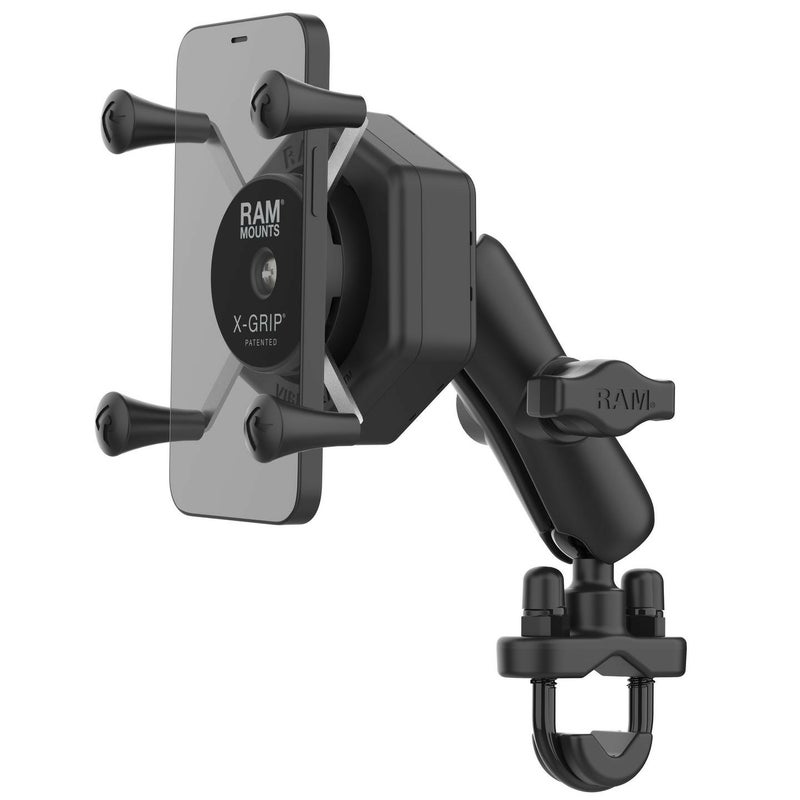 ラムマウントを代表する「Xグリップ」は汎用性が高く、スマホケース付きの端末でもしっかりとホールドできます。