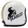 ●ヴィンテージBucoに使用される、跳馬が描かれたネームをモチーフに、ライダーが駆る鉄馬をイメージしたスタリオンがヘルメットに描かれています。