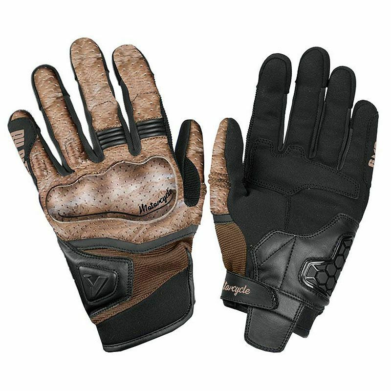●メッシュ生地とレザーを使用したコンビ素材のバイクグローブ。